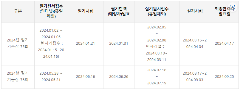 정확한 일정은 한국산업인력공단 홈페이지에서 확인할 수 있으며, 시험일정은 매년 변경될 수 있으니 반드시 확인하시기 바랍니다.